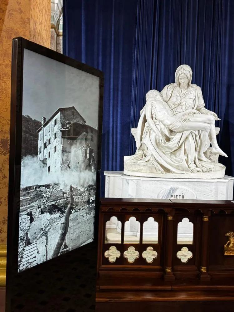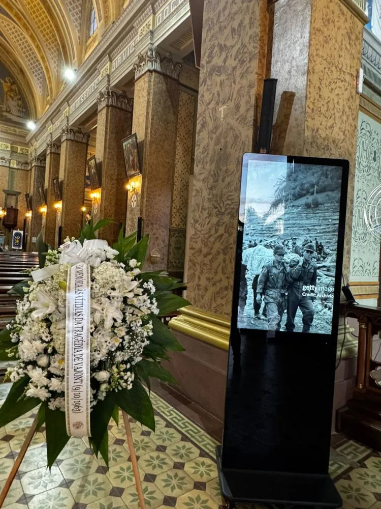As demais fotos utilizadas na cerimônia, passaram em um totem, relembrando não apenas a tragédia que abalou ambas as comunidades ,mas de que as ligações entre elas, vai além do Gemmellaggio, o pacto de cidades-irmãs, como o firmado entre Urussanga e Longarone.