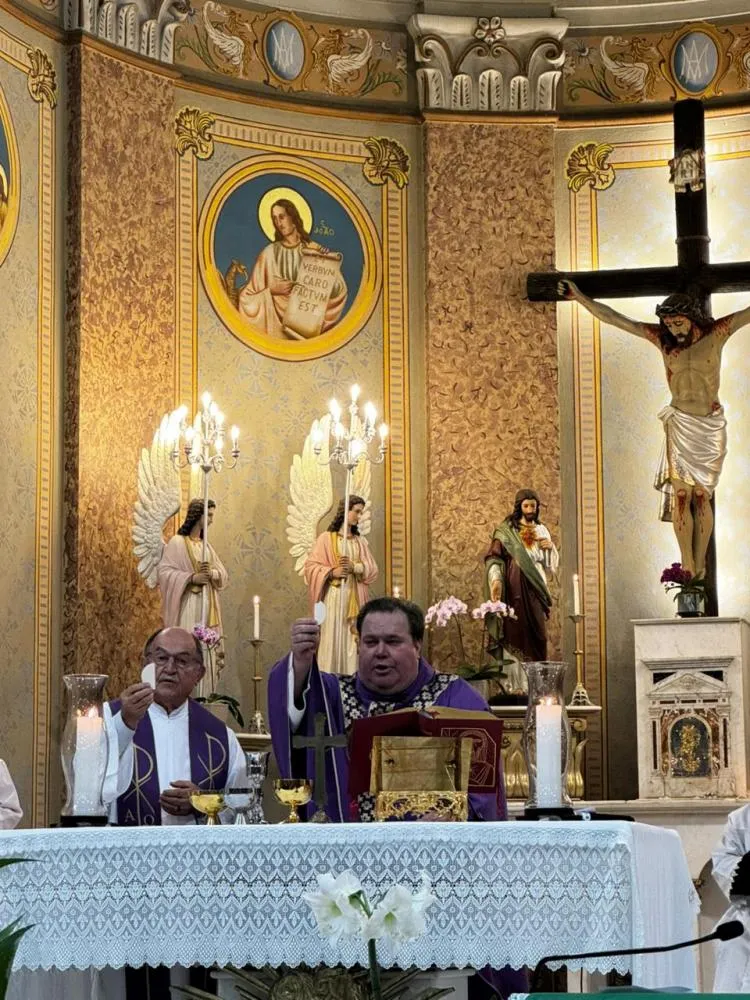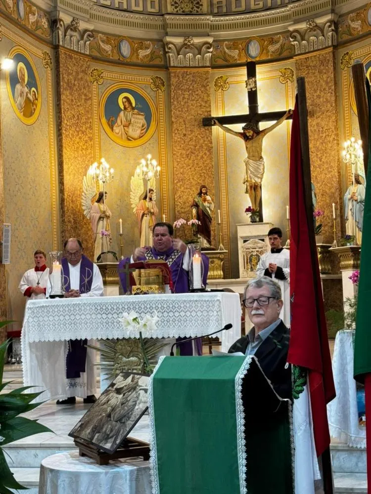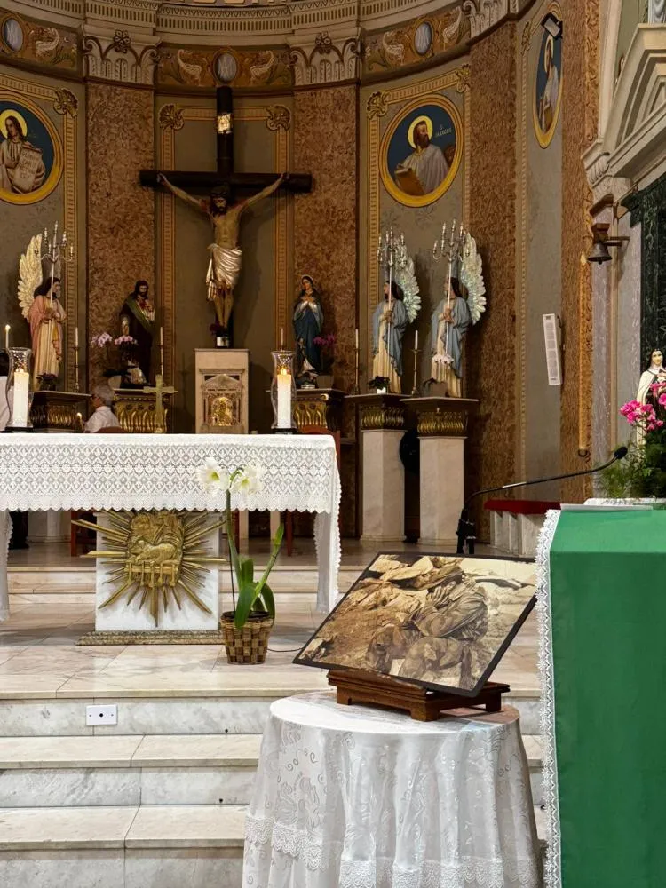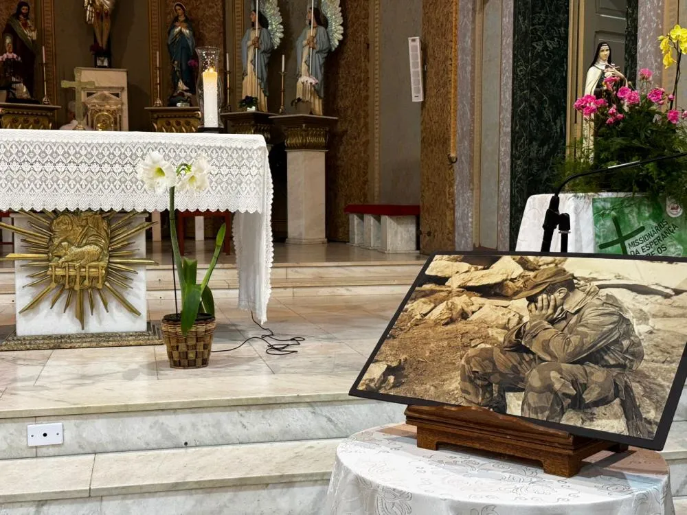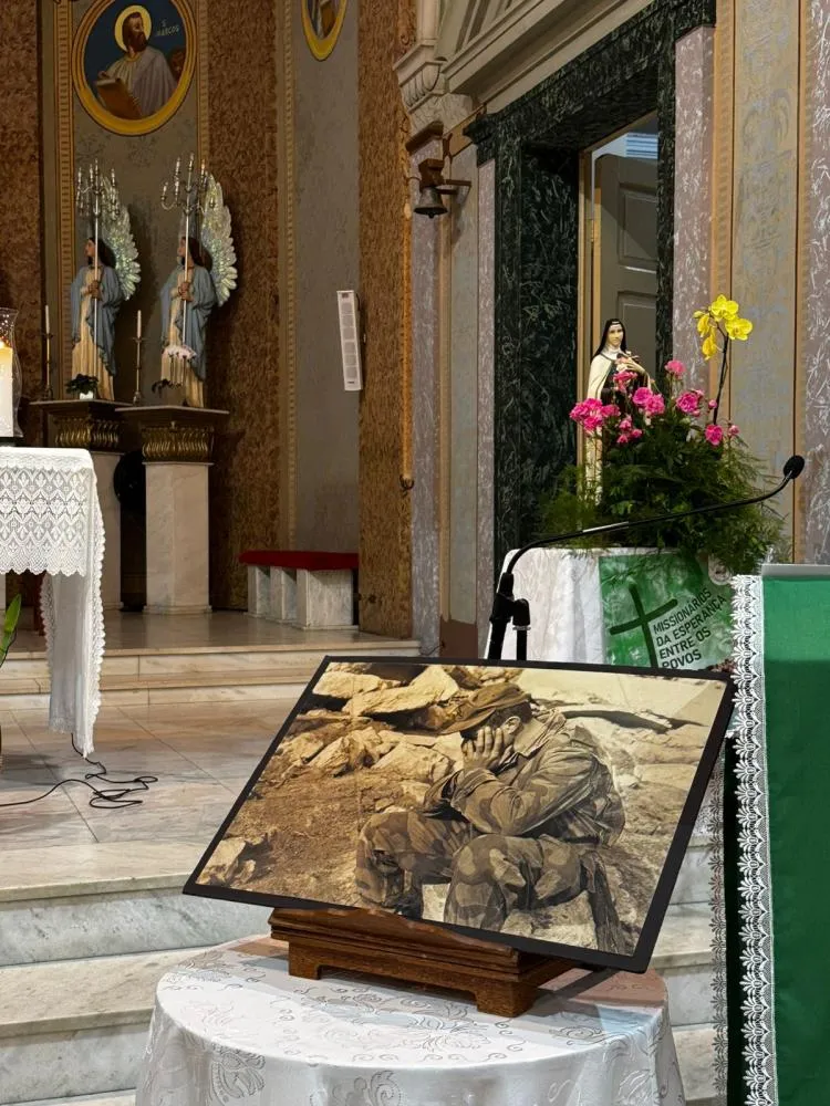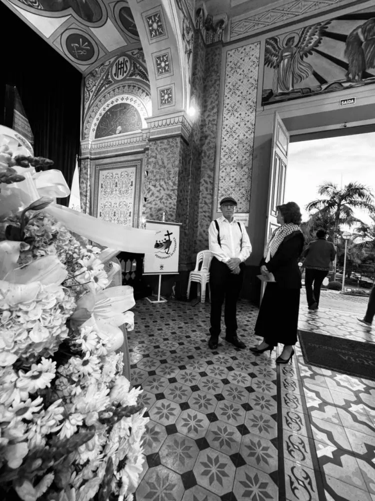 Neste ano, a foto foi colocada ao lado do altar, junto com a coroa de flores, e da forma como ela foi exposta, impressa e acondicionada em um material fixo, foi a forma como ela chegara ao FotoClube.